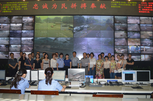 接著大家來到鐫刻有“忠誠為民、拼搏奉獻(xiàn)”字樣的全市交通路況顯示屏前。大屏幕上顯示著鄭州市各個主要單位、部位和重要道路交叉路口的即時信息,具有GPS定位功能的警車在不停地移動,視頻畫面依序切換,“原來每時每刻都有幾百輛警車在街面巡邏,每個路口都有監(jiān)控。看樣子,鄭州市的安保工作還是有保障的,以后更要規(guī)范自己的言行,遵守交通規(guī)則”大家很是感慨。