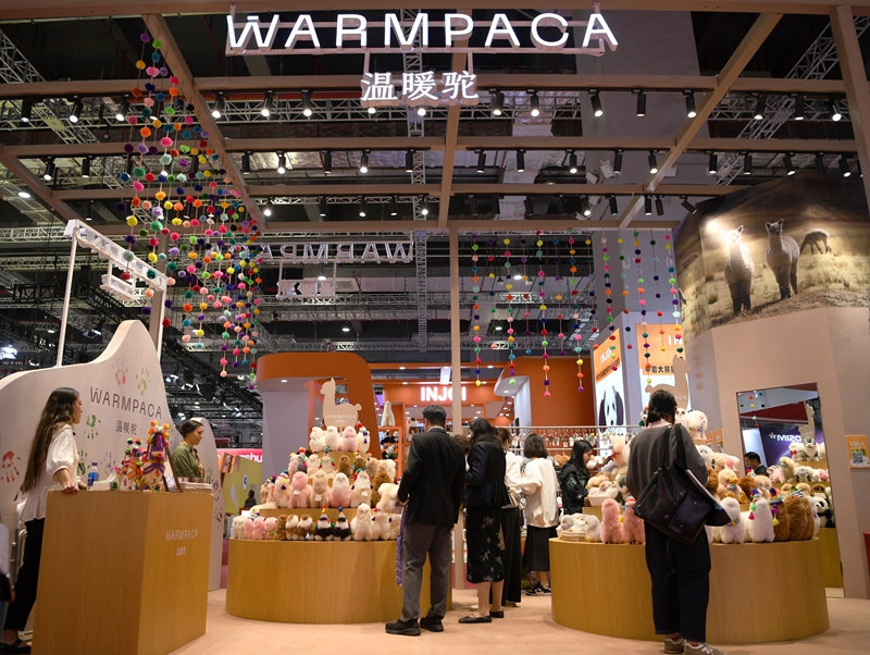 這是11月5日在上海拍攝的第七屆進(jìn)博會(huì)秘魯“溫暖駝”展臺(tái)。今年,秘魯品牌“溫暖駝”連續(xù)第七年亮相進(jìn)博會(huì),受到更多中國(guó)消費(fèi)者的喜愛(ài)。新華社記者 金馬夢(mèng)妮 攝