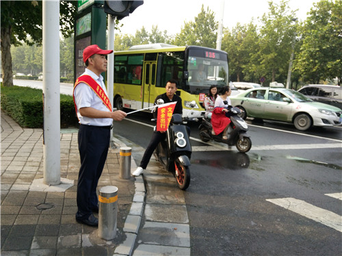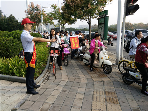 此次活動分為上午7:30—8:30,下午6:00—7:00兩個時段進行,一組四人,每天兩組志愿者輪流執勤。志愿者們頭戴小紅帽,身披紅色綬帶,手舉小紅旗,在黃河東路眾意西路交叉的四個路口處分別進行引導活動,通過勸阻橫穿馬路、亂闖紅燈等不文明行為,引導市民遵守交通法規,文明行路、文明行車。針對黃河東路眾意西路交叉口車流量大,電動車等行人眾多的問題,志愿者通過舉落小紅旗,引導行人通過斑馬線安全過馬路提醒過往行人提高文明出行和交通安全意識。同時,志愿者還熱心攙扶老人、孕婦等特殊群體過馬路。