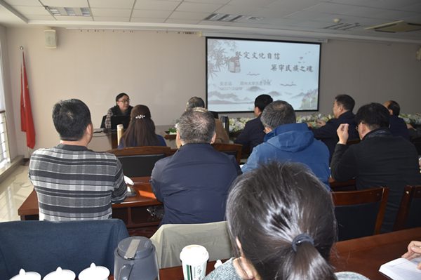 吳教授以《堅定文化自信,筑牢民族之魂》為題,圍繞文化自信的含義、牢牢掌握意識形態(tài)工作領(lǐng)導(dǎo)權(quán)、培育和踐行社會主義核心價值觀、繁榮發(fā)展社會主義文藝等四個方面進行了專題輔導(dǎo)。他認為文化自信是一個民族、一個國家以及一個政黨對自身文化價值的充分肯定和積極踐行,并對其文化的生命力持有的堅定信心。他歸納出讓中國人“自信”的“文化”,至少包括三個層面:中華優(yōu)秀傳統(tǒng)文化、革命文化、社會主義先進文化。當(dāng)前我們面臨的挑戰(zhàn)和困難前所未有,境內(nèi)外敵對勢力插手意識形態(tài)斗爭的情況越來越復(fù)雜,形勢越來越嚴峻,多種勢力聯(lián)手,通過網(wǎng)絡(luò)、新媒體等各種手段,妄圖摧毀中國人的自信和共產(chǎn)黨的執(zhí)政根基。我們要按照習(xí)總書記的要求,堅持黨管意識形態(tài)原則不動搖,進一步堅定共產(chǎn)主義理想信念,從我做起,從現(xiàn)在做起,在意識形態(tài)斗爭中做到對黨忠誠、個人干凈、敢于擔(dān)當(dāng),對一些意識形態(tài)的挑戰(zhàn)要敢于亮劍。