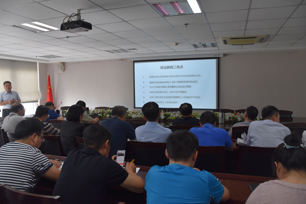 5月24日下午,根據集團公司2019年度普法培訓計劃要求,為大力宣傳學習新通過的《最高人民法院關于審理建設工程施工合同糾紛案件適用法律問題的解釋(二)》 (以下簡稱“解釋二”),集團公司在25樓會議室開展了《“建設工程施工合同法律適用”解讀暨職工普法工作專題會議》。集團公司60多名員工參加了本次培訓。