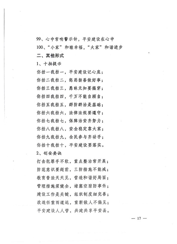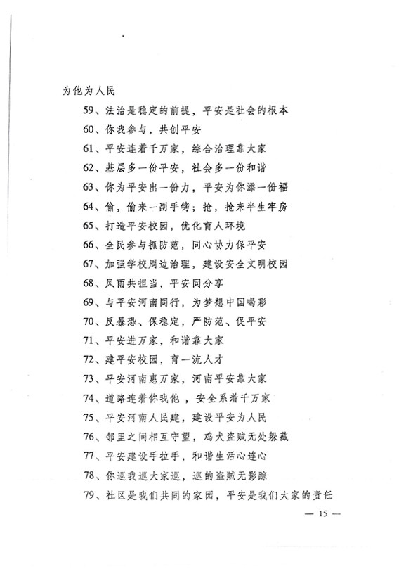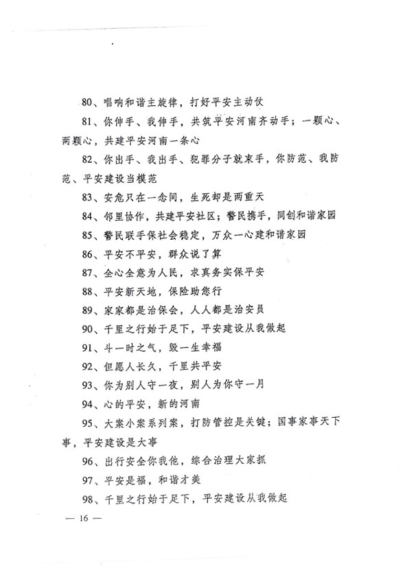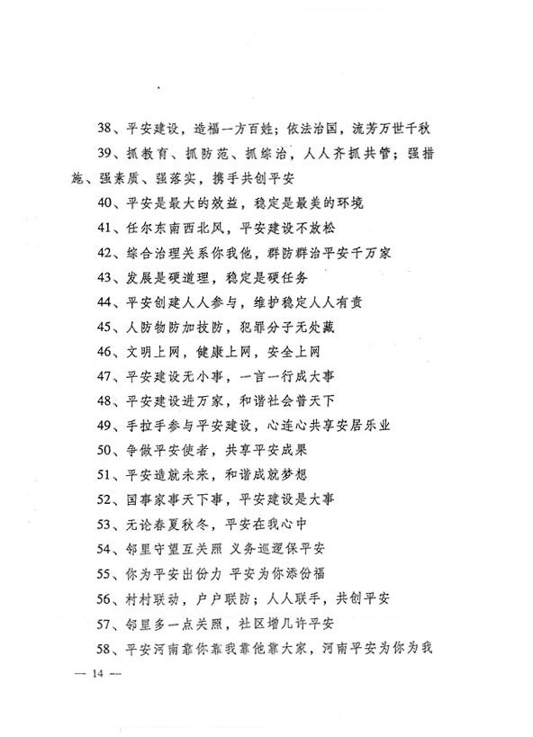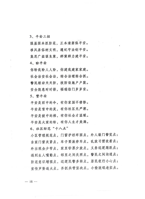 平安兩字重千斤,社會穩定得民心。 創建平安人人有責,構建和諧人人參與。